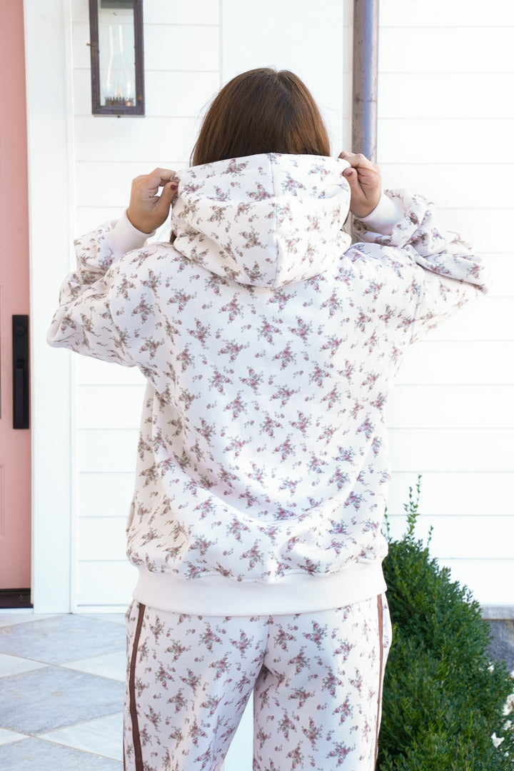Floral Print Elastic Waist Fleece Sweatpants with Stripes