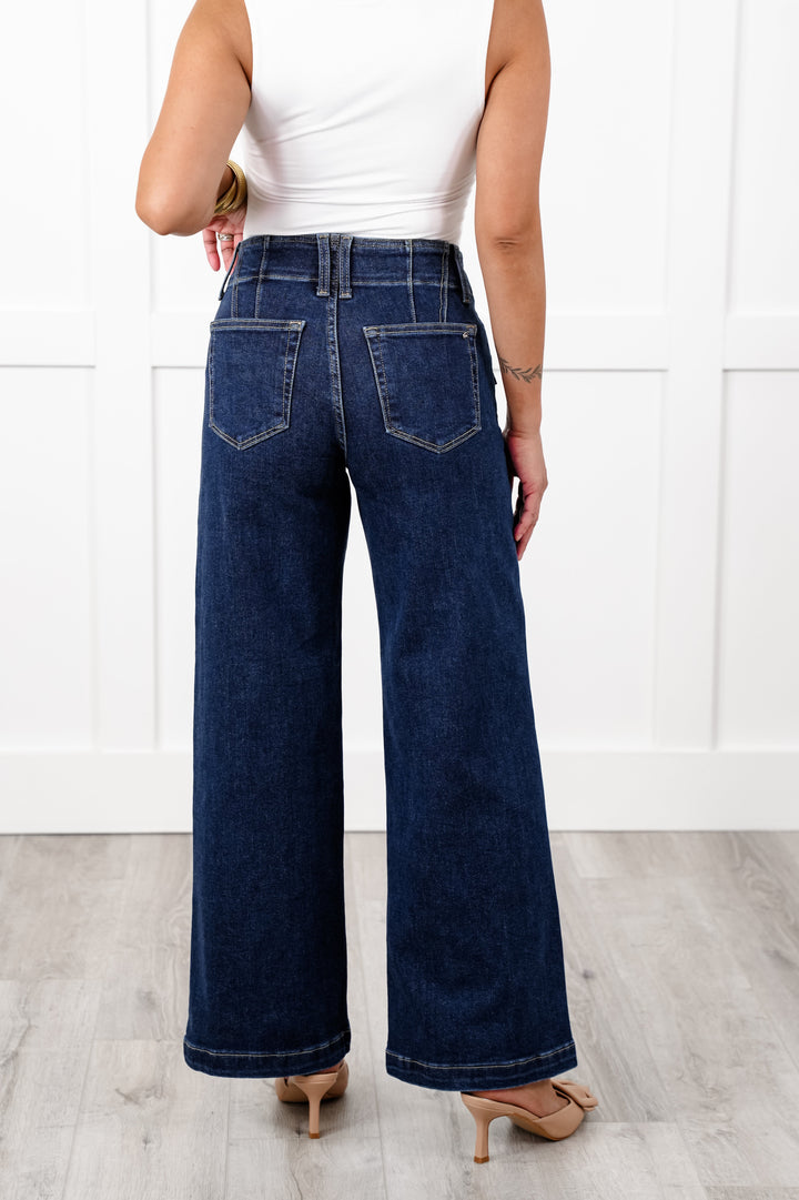 Mica High Rise Dark Wash Double Button Front Seam Wide Leg Jeans