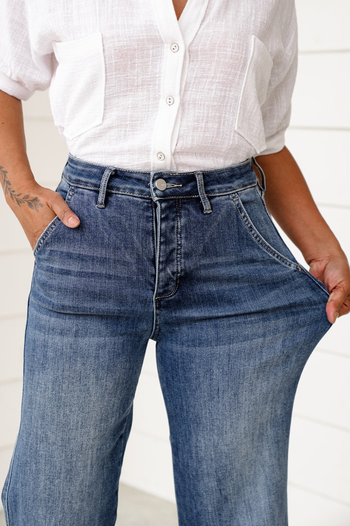 Restock Mica High Rise Medium Wash Wide Leg Jeans