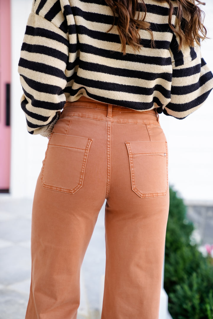Mica High Rise Rust Double Waistband Wide Leg Jeans
