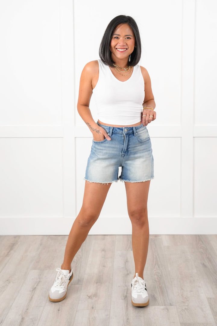 Mica High Rise Medium Wash Relaxed Straight Leg Cuffed Jeans