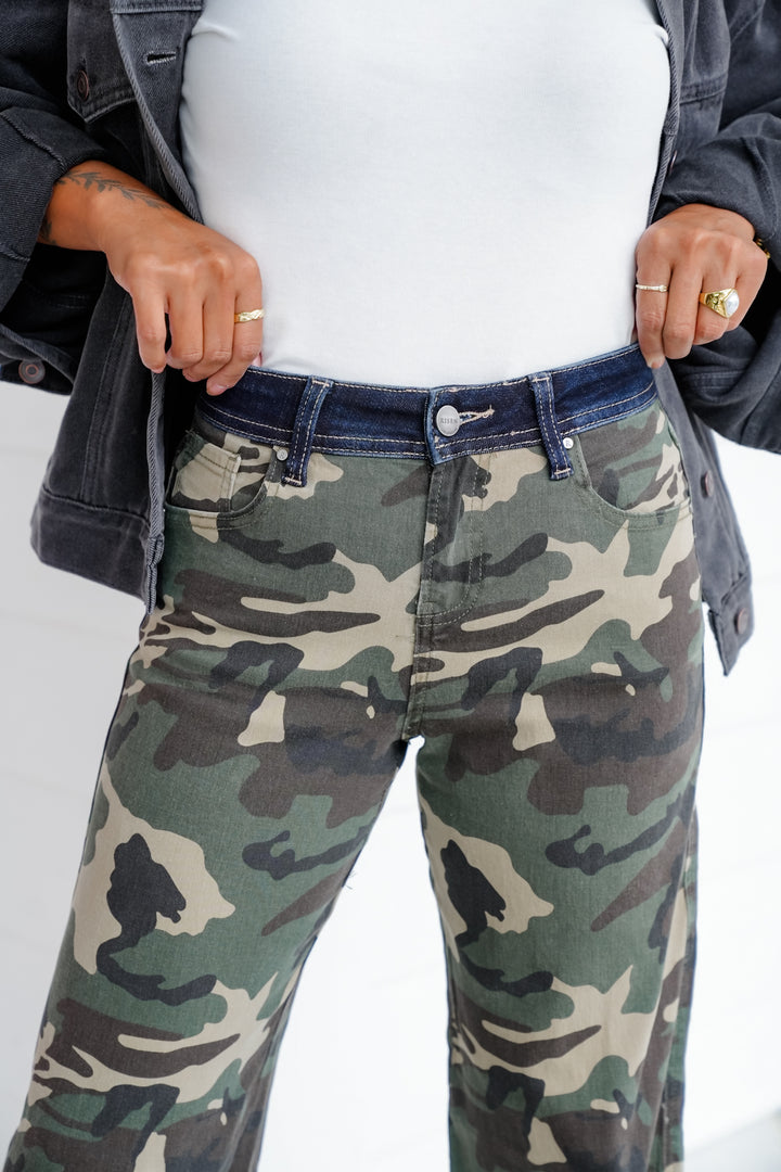 Risen Mid Rise Camo Wide Straight Leg Pants