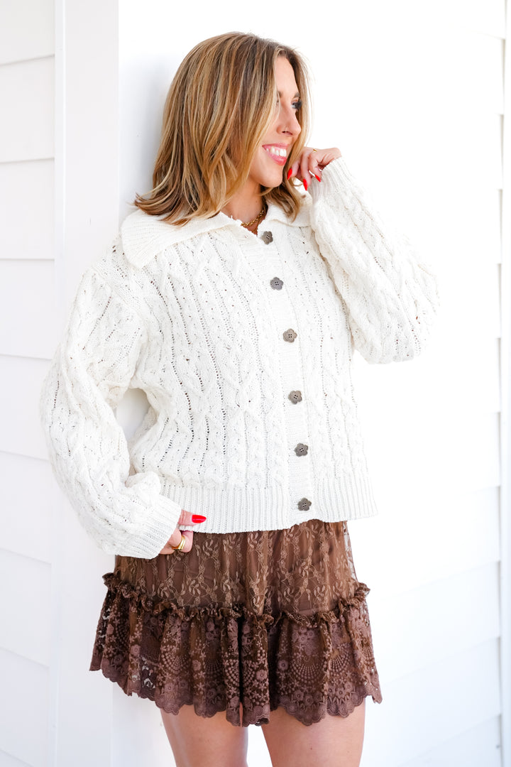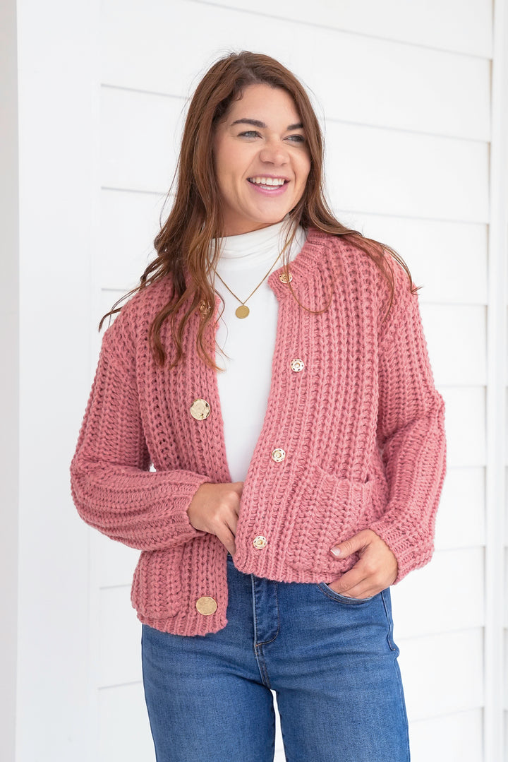 Chunky Knit Long Sleeve Cardigan with Metal Button Detail