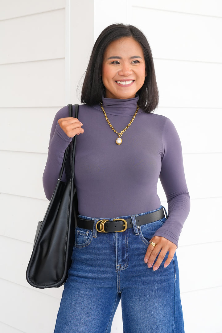 Seamless Long Sleeve Turtleneck Bodysuit with Thumbholes