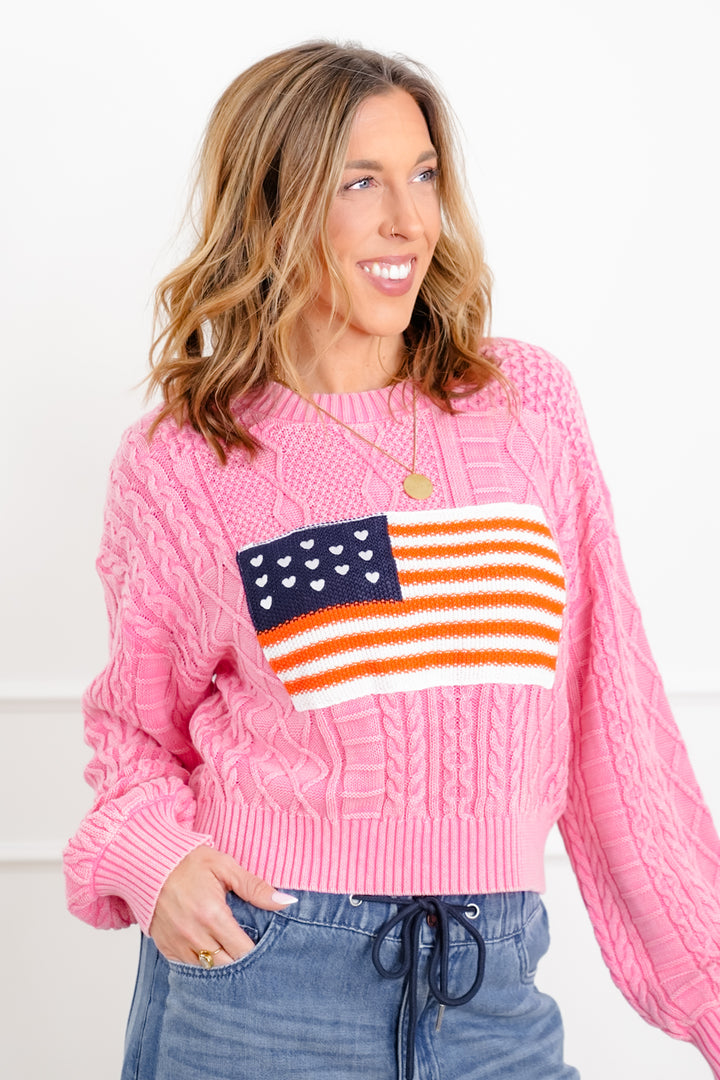 POL Long Sleeve Round Neck American Flag Sweater