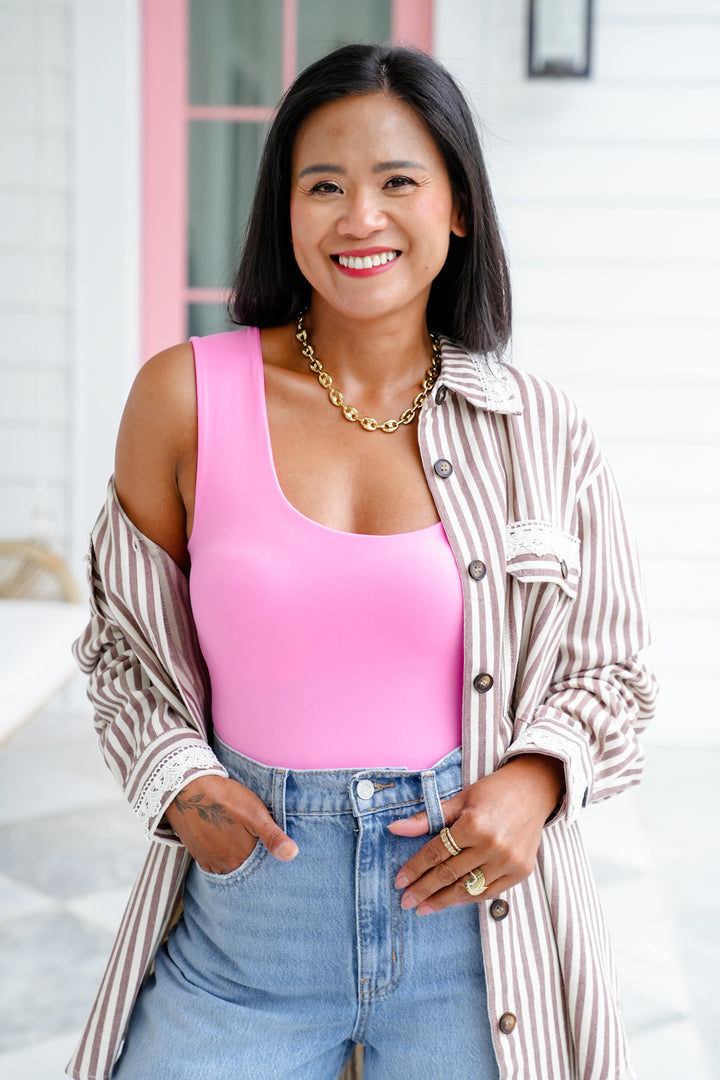 Door Buster! Zenana U-Neck Seamless Cropped Tank Top with Built-In Bra