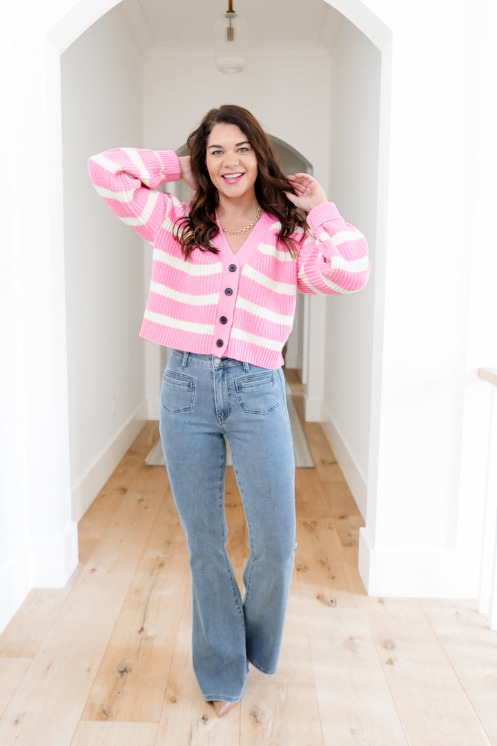 Plus/Reg Knit Long Sleeve Button Down Cropped Cardigan