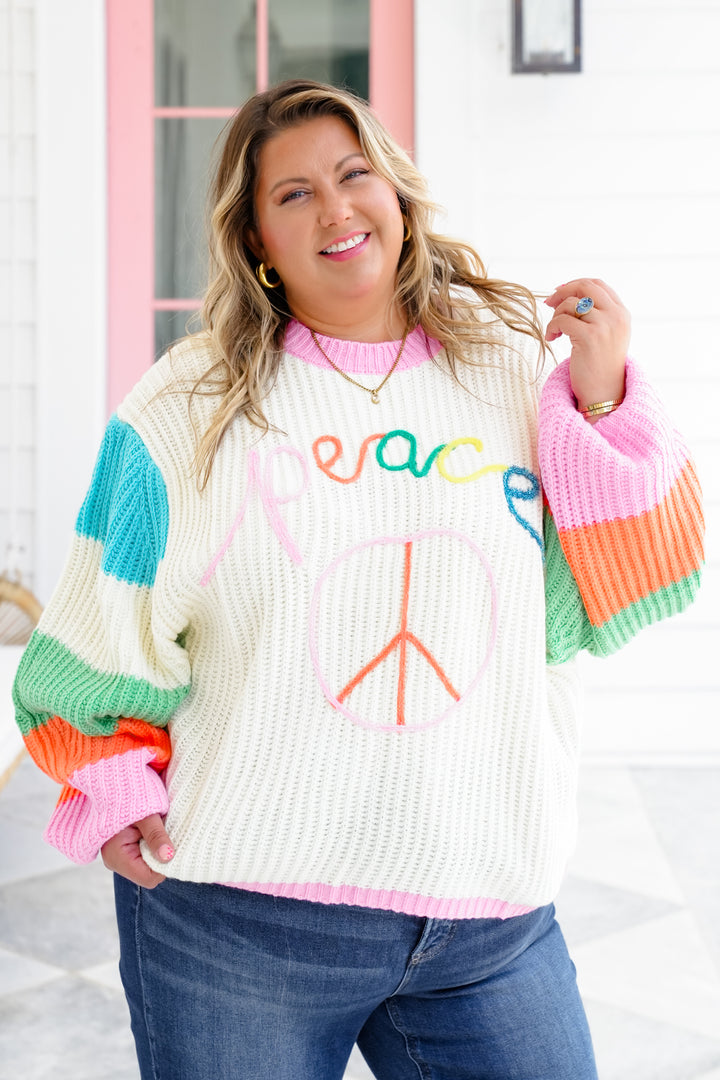 Plus/Reg Color Block Long Sleeve Sweater with Peace Sign