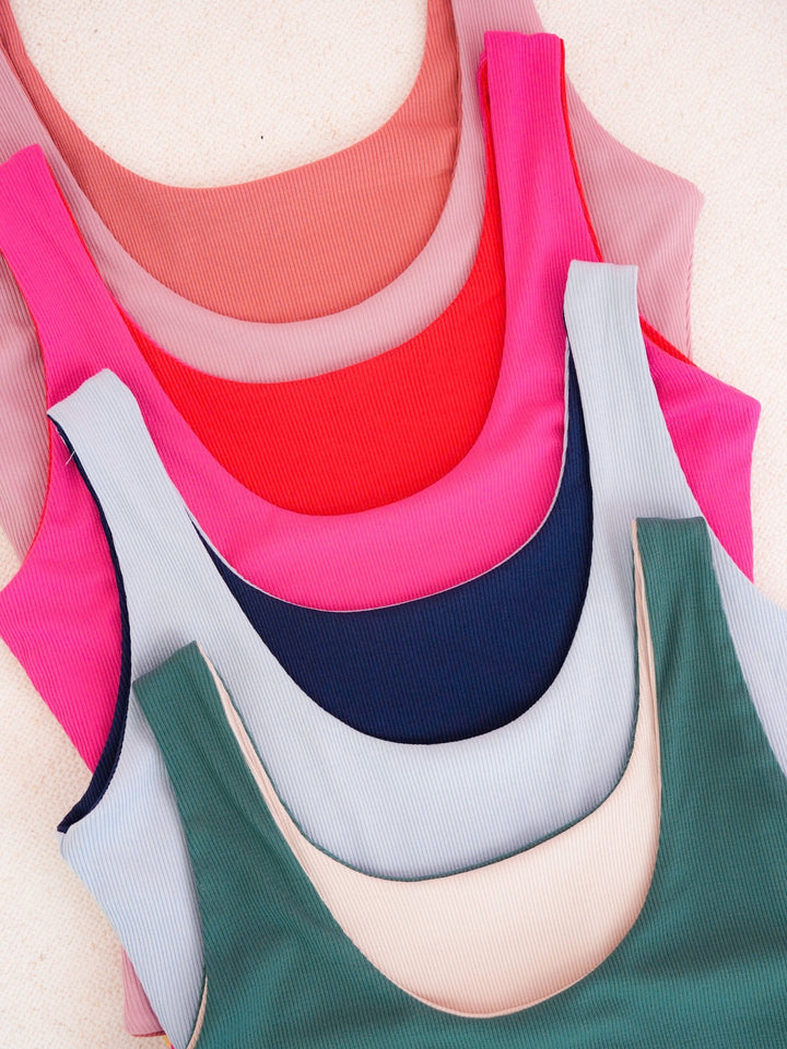 Plus/Reg Sleeveless Ribbed Knit Reversible Bodysuit (Multiple Colors)