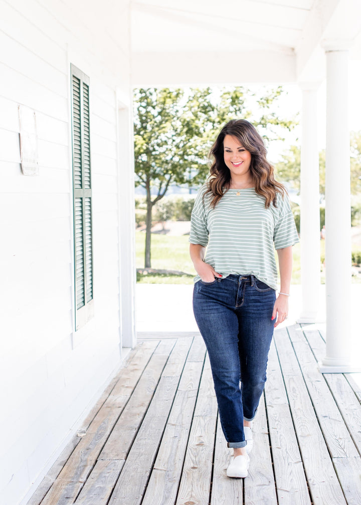 Judy Blue Mid Rise Medium Vintage Wash Boyfriend Jeans with Side Panel And Rolled Cuff