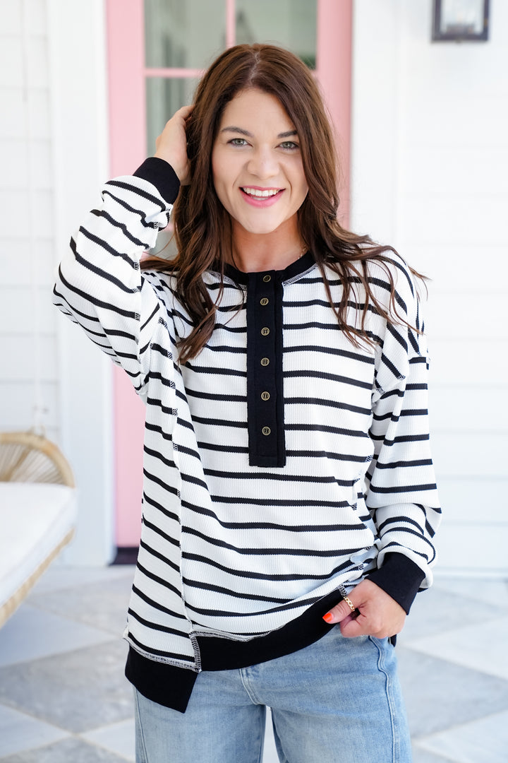 Plus/Reg Stripe Long Sleeve Button Down Top