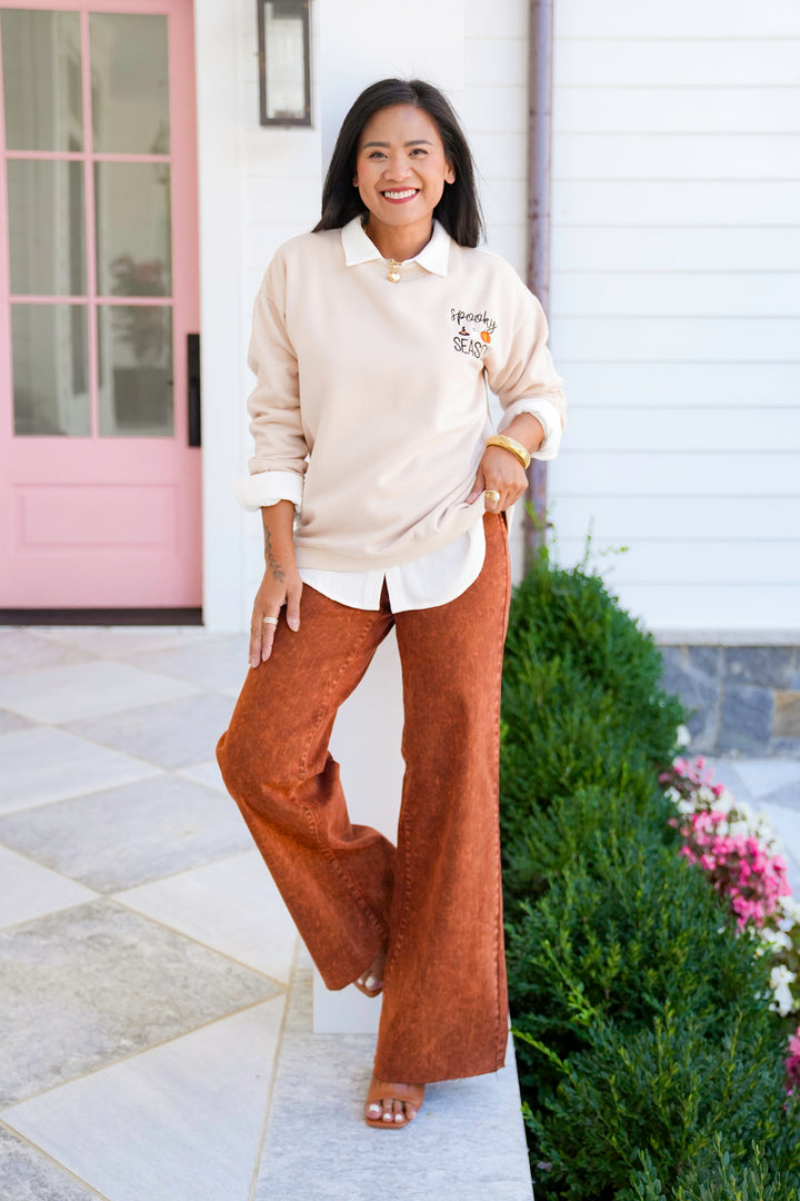 Plus/Reg Embroidered "Spooky Season" Long Sleeve Pullover Sweatshirt