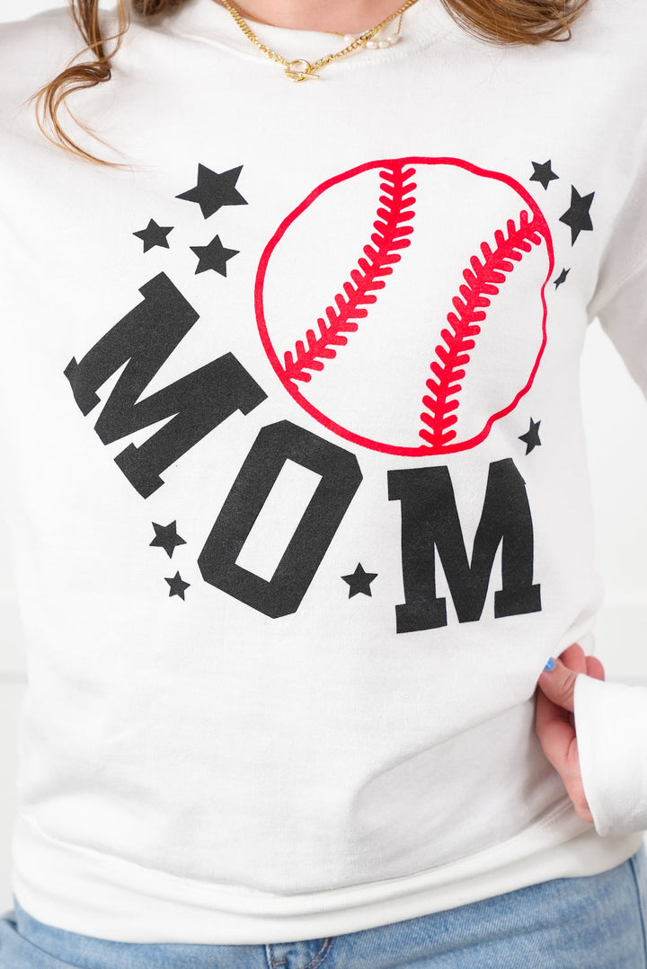 Plus/Reg Long Sleeve Baseball "Mom" Graphic Sweatshirt