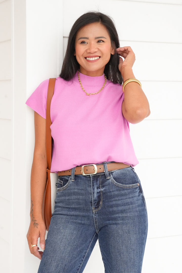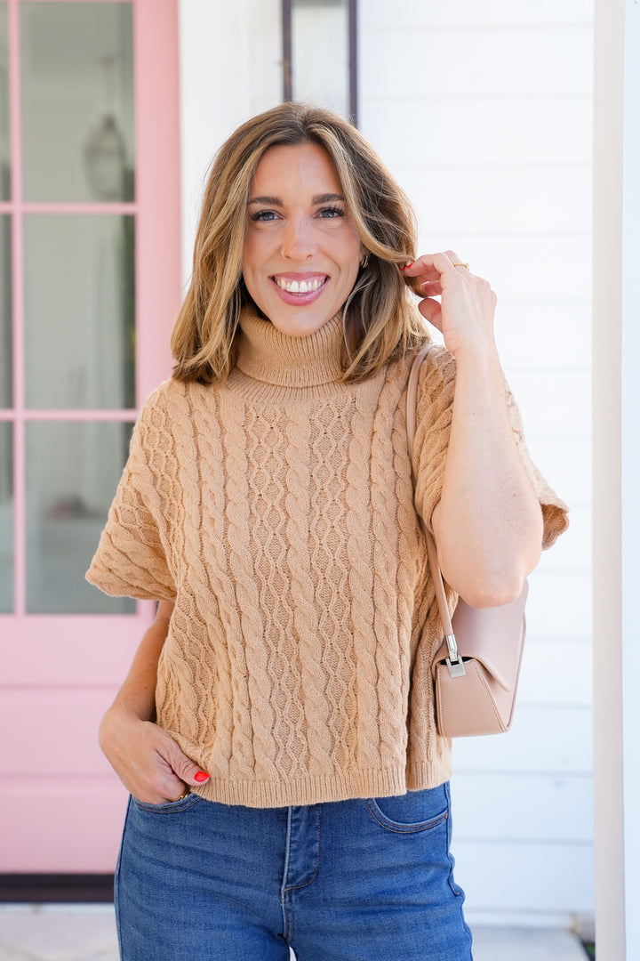 Plus/Reg Cap Sleeve High Neck Sweater Top