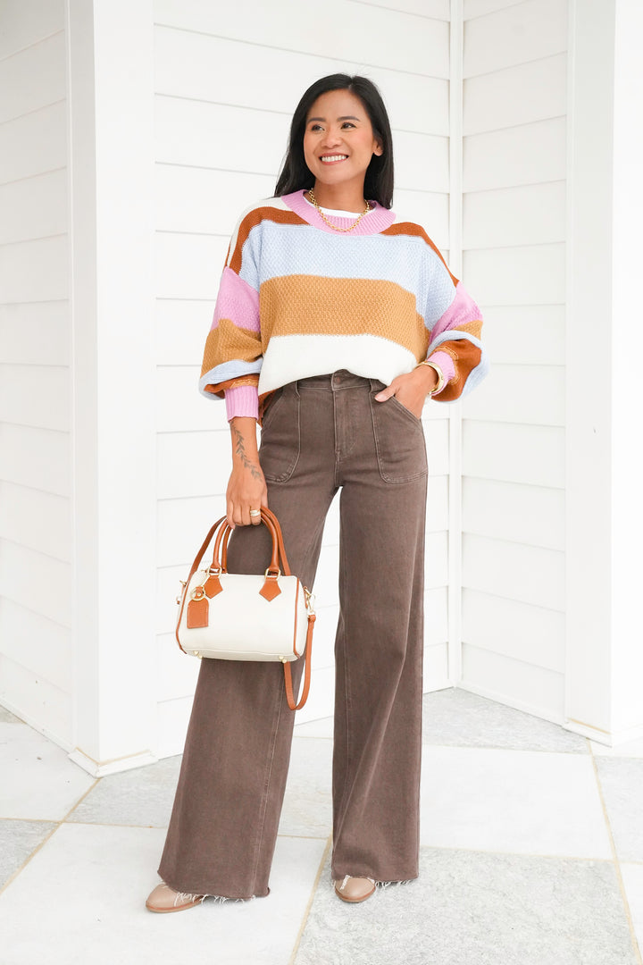 Plus/Reg Color Block Wide Stripe Long Sweater
