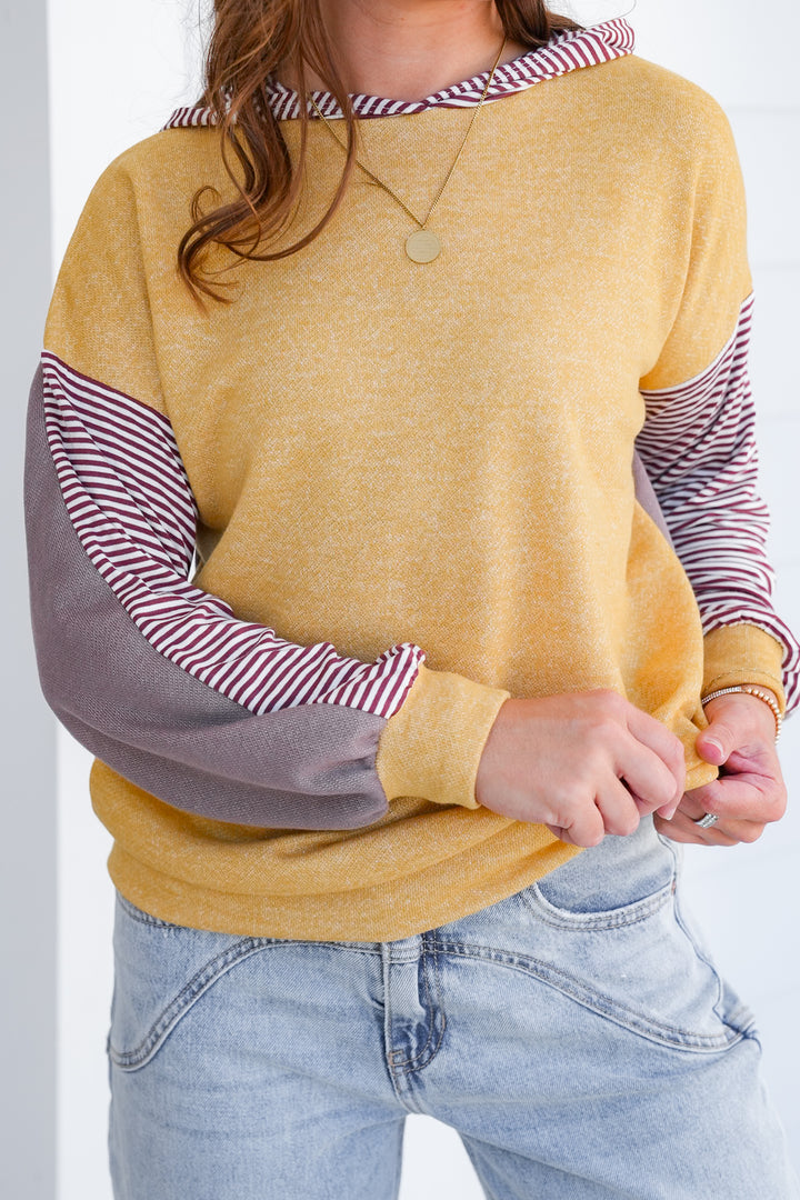 Plus/Reg Color Block Long Sleeve Hoodie with Stripes