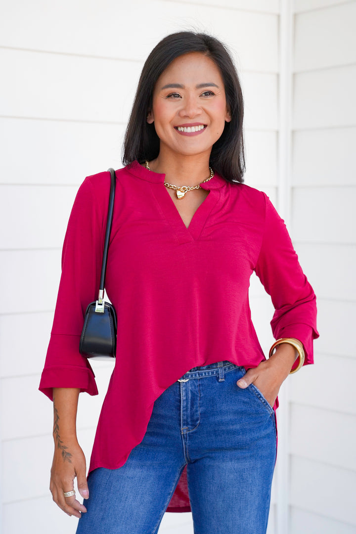 Door Buster! Plus/Reg Solid 3/4 Bell Sleeve Tunic Top