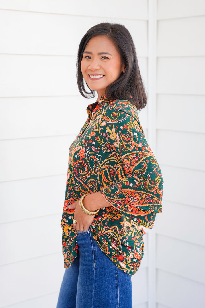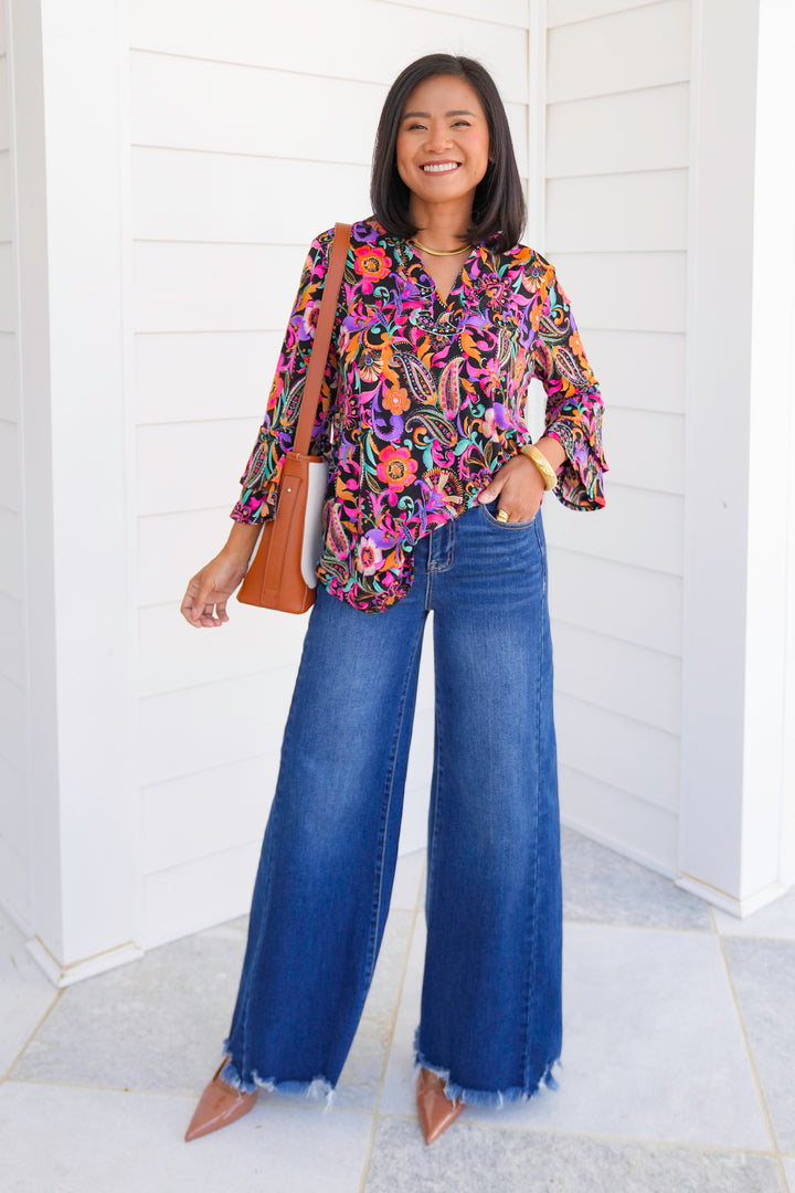 Plus/Reg Paisley Print Long Bell Sleeve Tunic Top