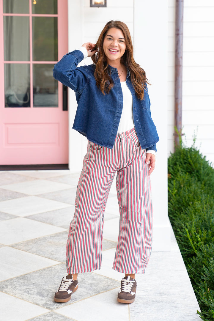 Risen Dark Wash Long Sleeve Button Down Shacket