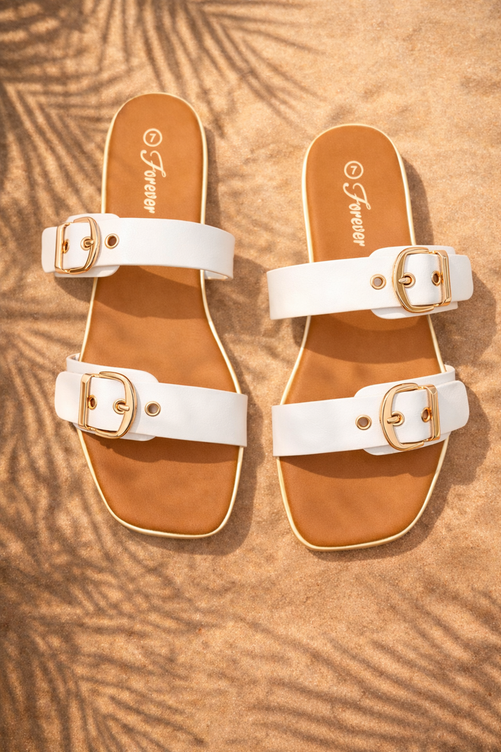 Double Buckle Strap Slide Sandal