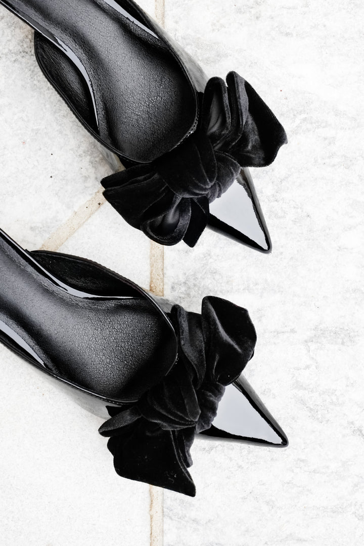 MIA Patent Vegan Leather Pointed Toe Mule with Velvet Bow