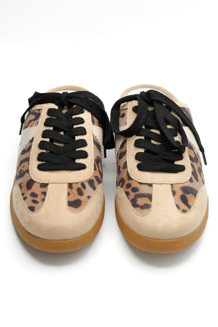 MIA Leopard Print Slip On Sneaker Mule with Suede Trim