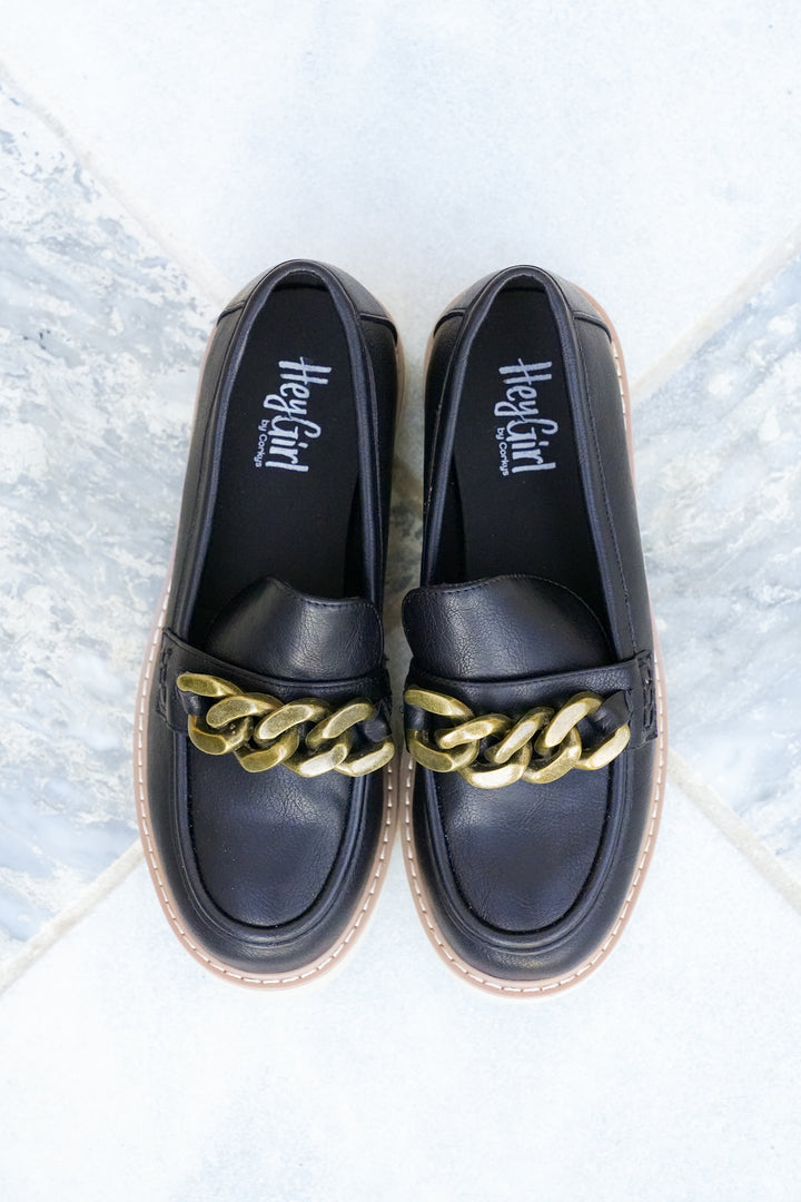 Corky's "Not Literally" Vegan Leather Loafer with Chunky Gold Chain