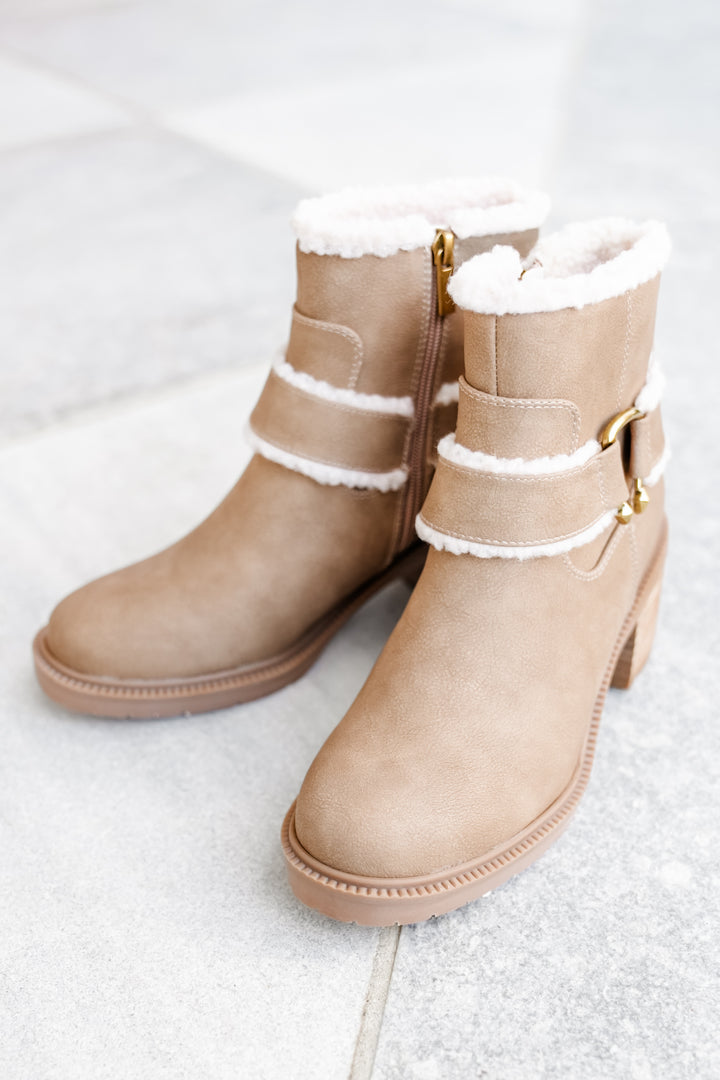 Yellow Box Vegan Suede Ankle Boot with Shearling Trim