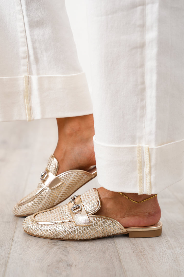 MIA Woven Raffia Mule Loafers with Metal Buckle