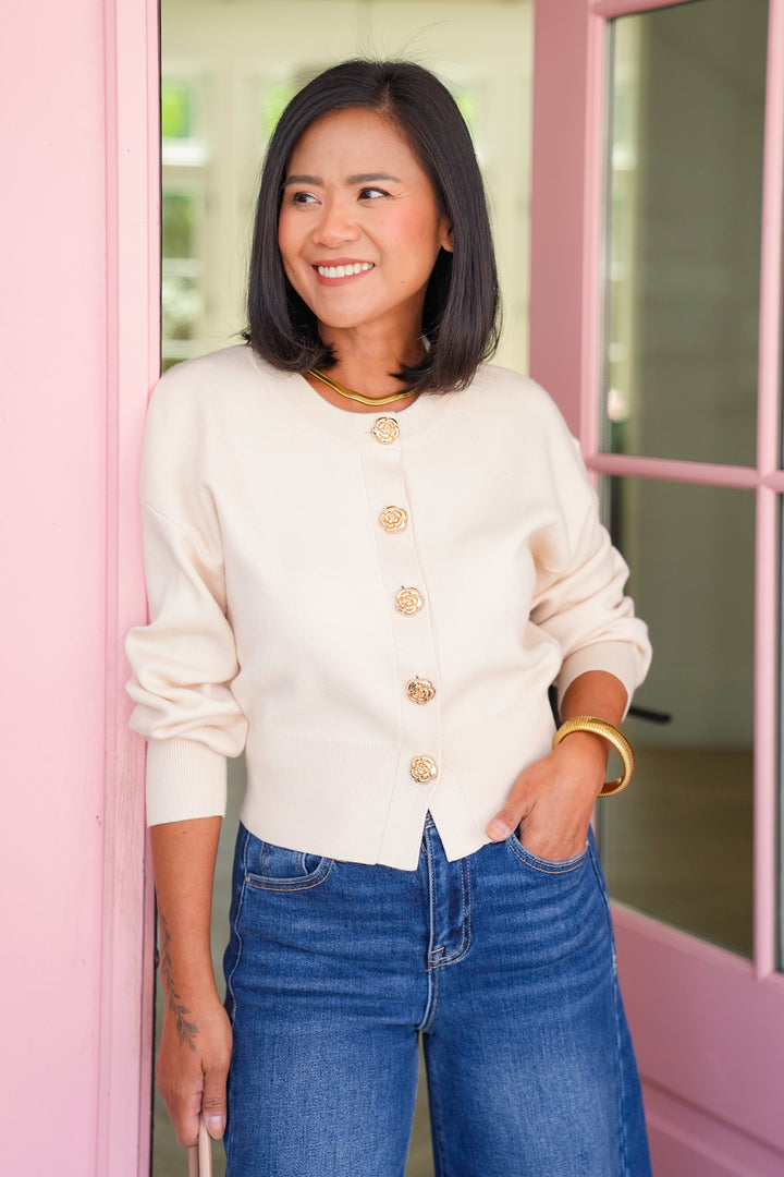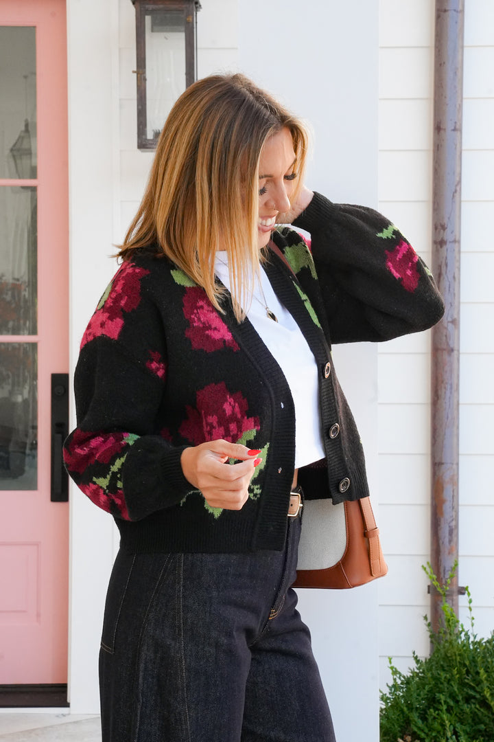 POL Floral Embroidered Long Sleeve Button Up Sweater