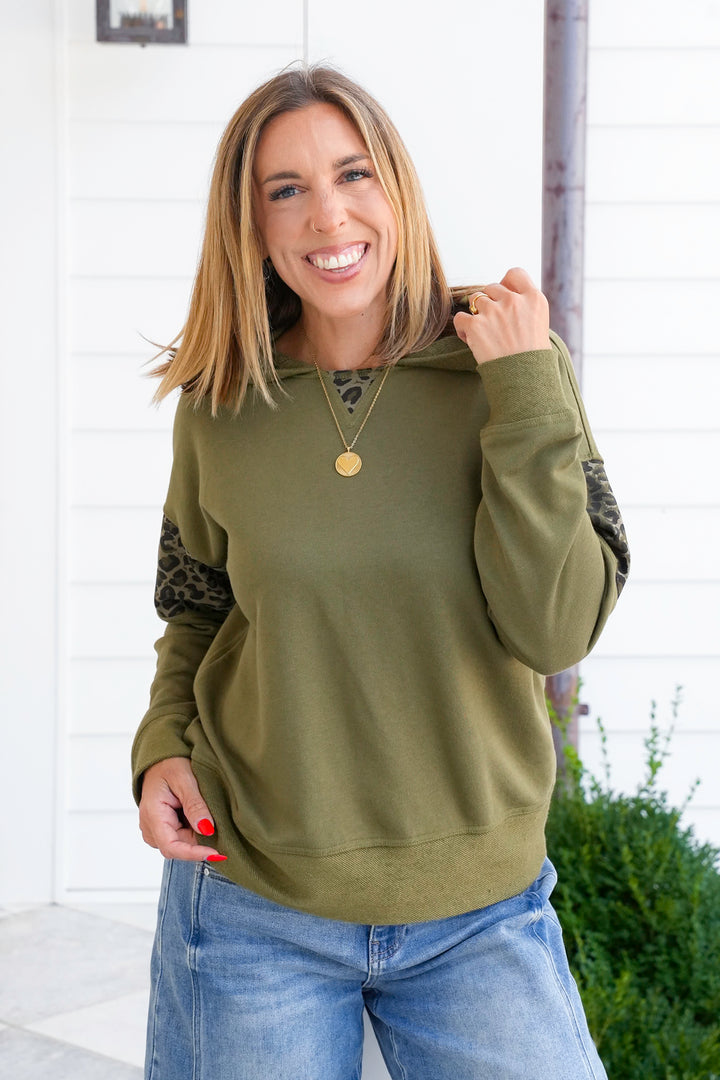 Risen High Rise Leopard Wide Leg Pants with Contrasting Waistband