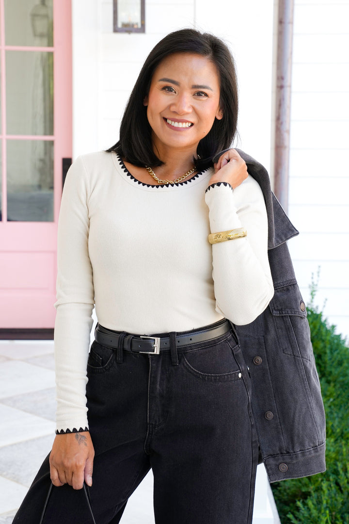 Plus/Reg Cable Knit Long Sleeve Button-Up Bodysuit
