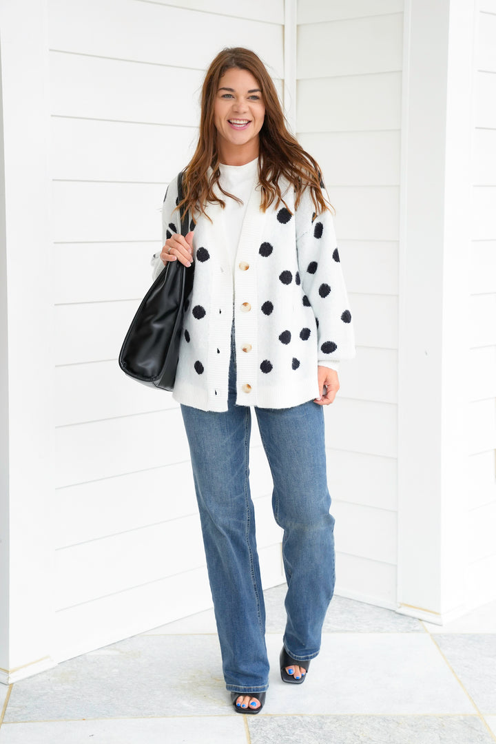 Stripe Cardigan And Strapless Midi Knit Dress Set