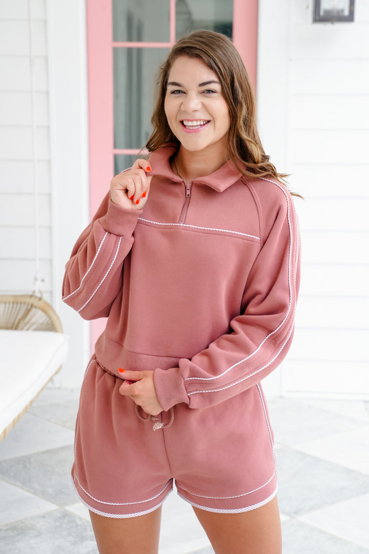 Long Sleeve Fleece Sweatshirt with Gingham Trim Detail