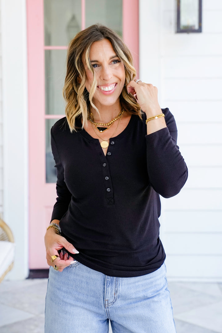 Plus/Reg Ribbed Long Sleeve Mock Neck Top