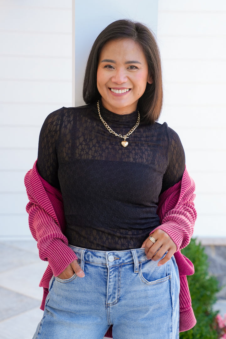 Knit Long Sleeve Button Down Cardigan with Floral Detail