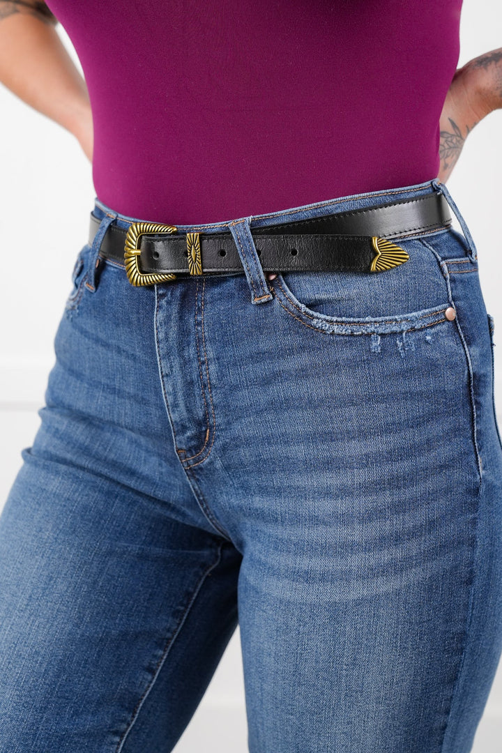 Risen High Rise Dark Wash Elastic Waistband Crop Wide Leg Jeans with Ruffle Band
