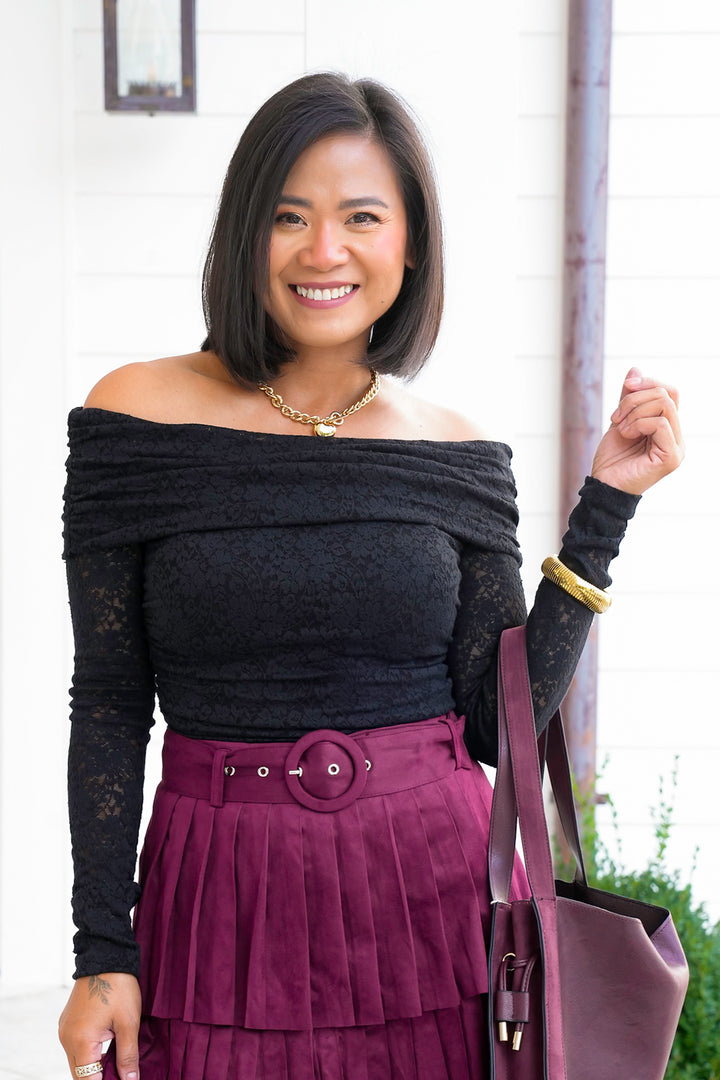 Lace Off Shoulder Long Sleeve Top with Ruched Side