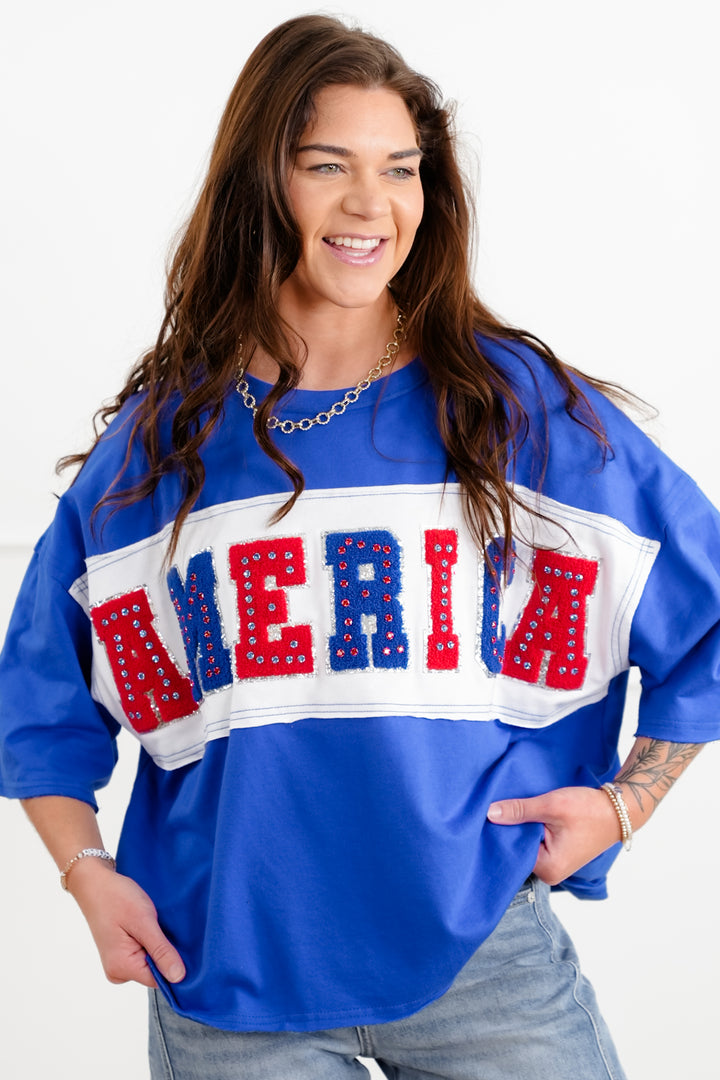 Plus/Reg Sequin Stars Patch Short Sleeve Tee