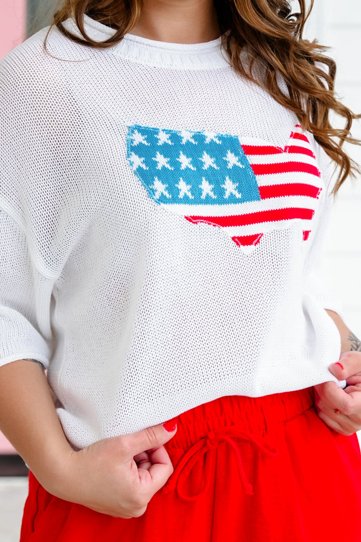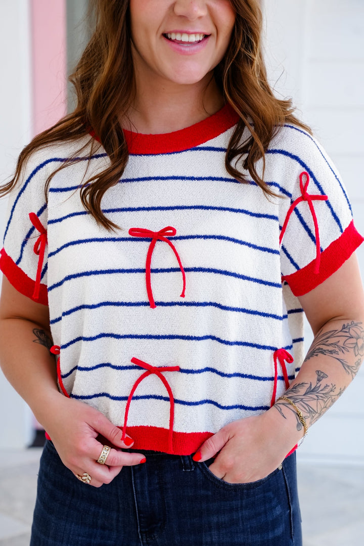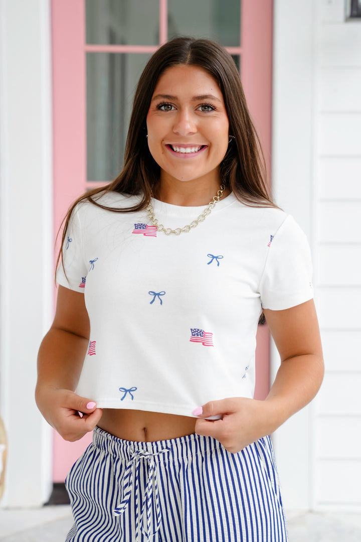 American Flag and Bow Print Short Sleeve Crop Tee Shirt