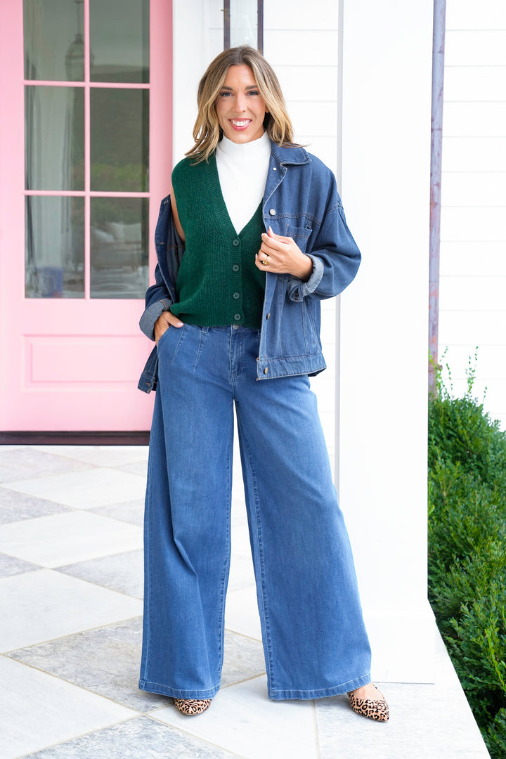 Risen Medium Wash V Neck Button Down Vest