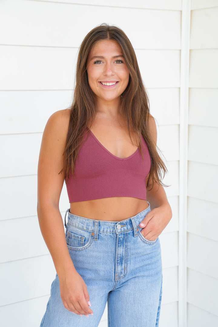 Seamless Ribbed Triangle Chest Spaghetti Brami