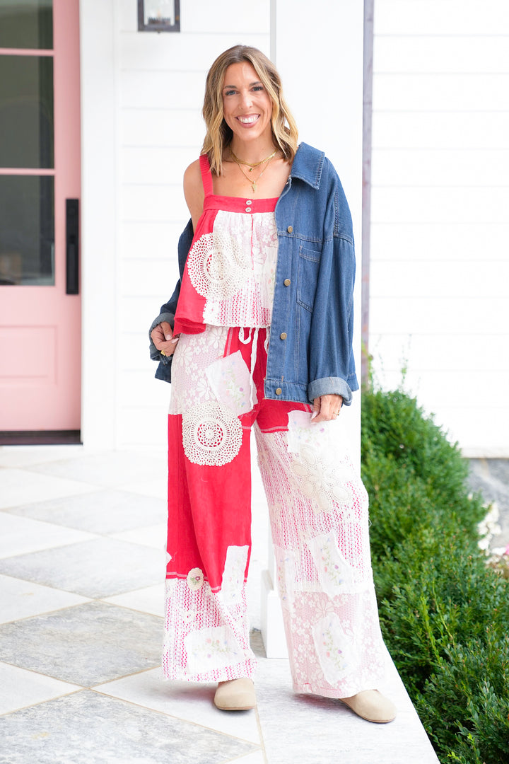 Red Double V-Neck Cami