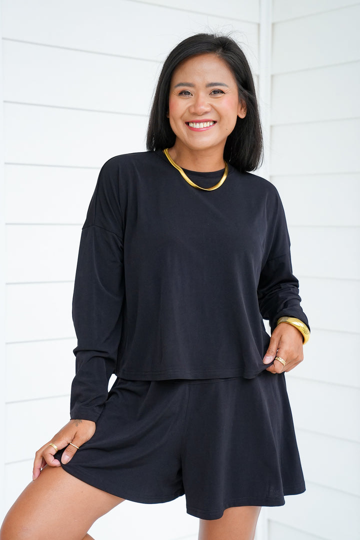 Lace Trim Long Sleeve Pullover Top and Skort Set