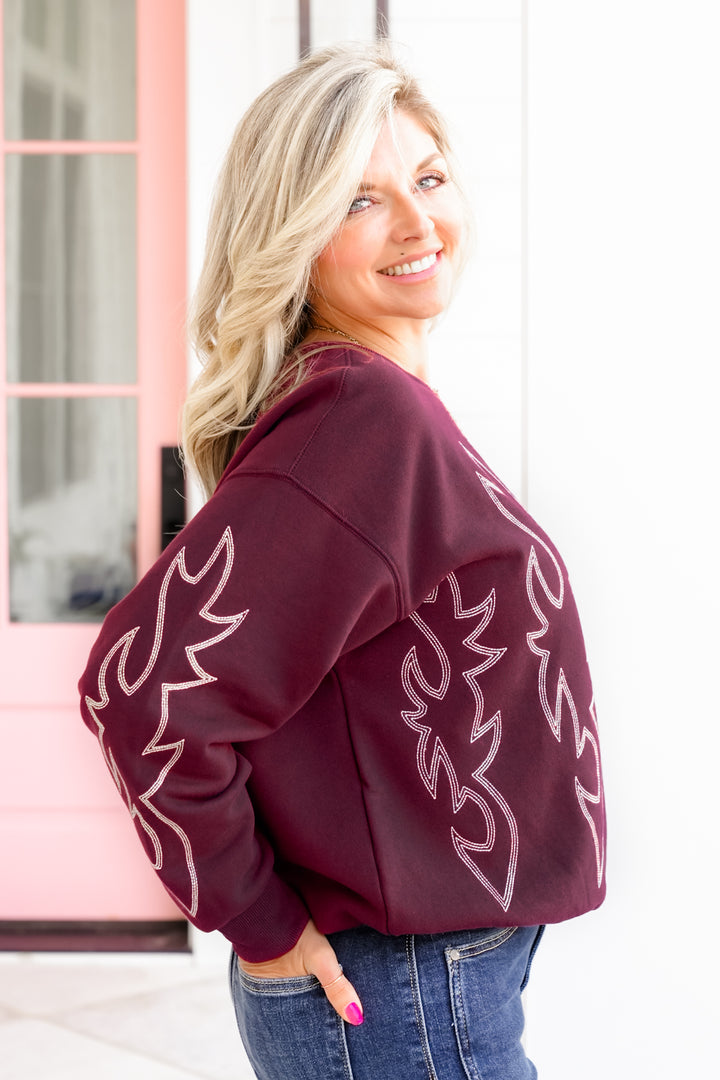 Long Sleeve Western Stitch Pullover Sweatshirt