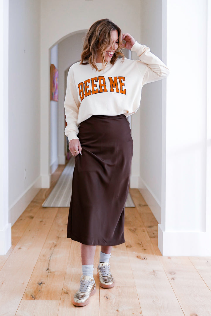 Cream Long Sleeve "Beer Me" Graphic Sweatshirt