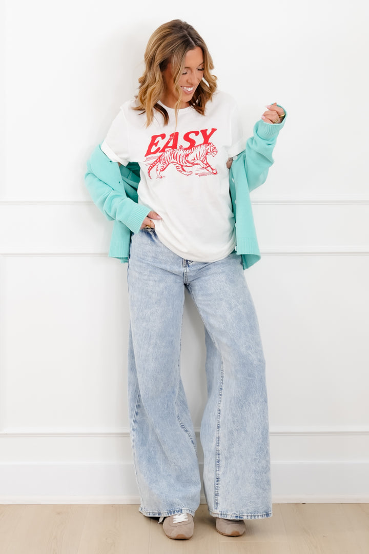 Plus/Reg White Short Sleeve "Easy Tiger" Graphic Tee