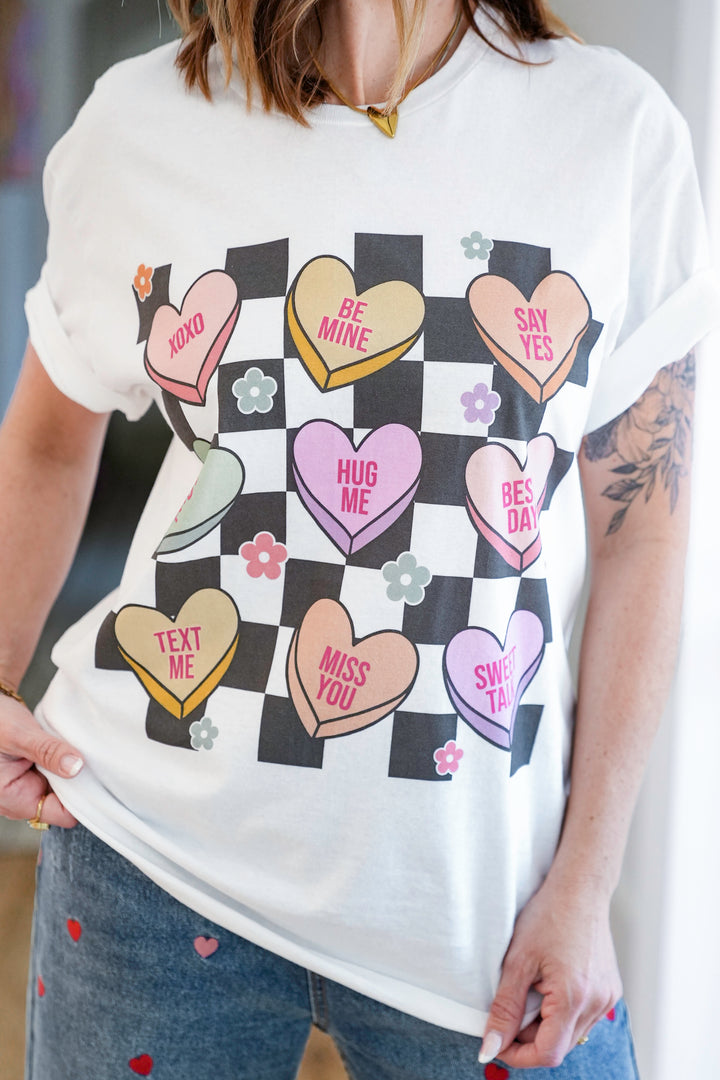 Plus/Reg Short Sleeve "Checkered Board Hearts" Graphic Tee