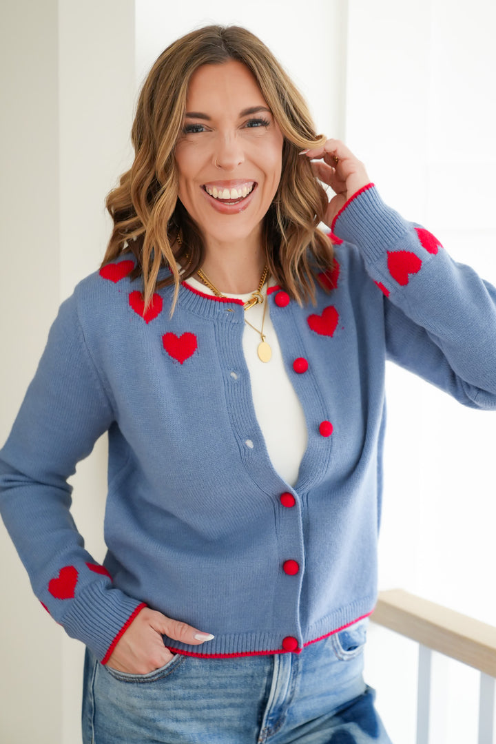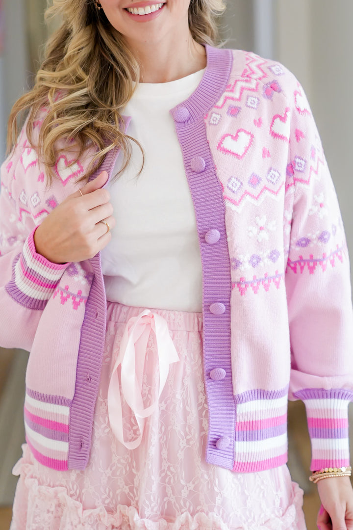 Pattern Long Sleeve Button Down Cardigan with Hearts