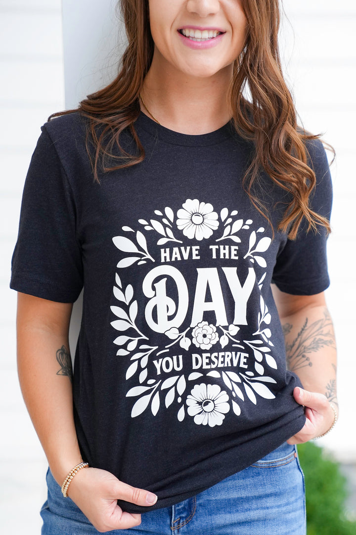 Plus/Reg Short Sleeve "Have The Day You Deserve" Graphic Tee